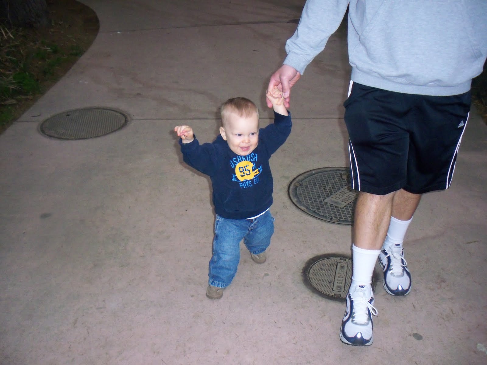 At dinner last night we were having some pasta. Colby is getting good at using his spoon to feed himself, but still having trouble getting food on it. I could tell he was getting frustrated and put down his spoon. He then put his fingers in his pasta. I thought "Okay he is tired of trying". Then he picked up some pasta, put it on his spoon, picked up his spoon, and ate it. Colby had a big smile on his face, and I could tell he was proud. And so was I.